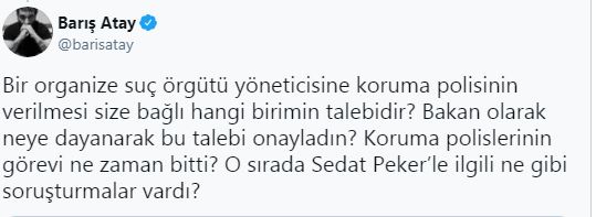 Barış Atay: Sedat Peker'e koruma polisi verilmesini neden onayladın?